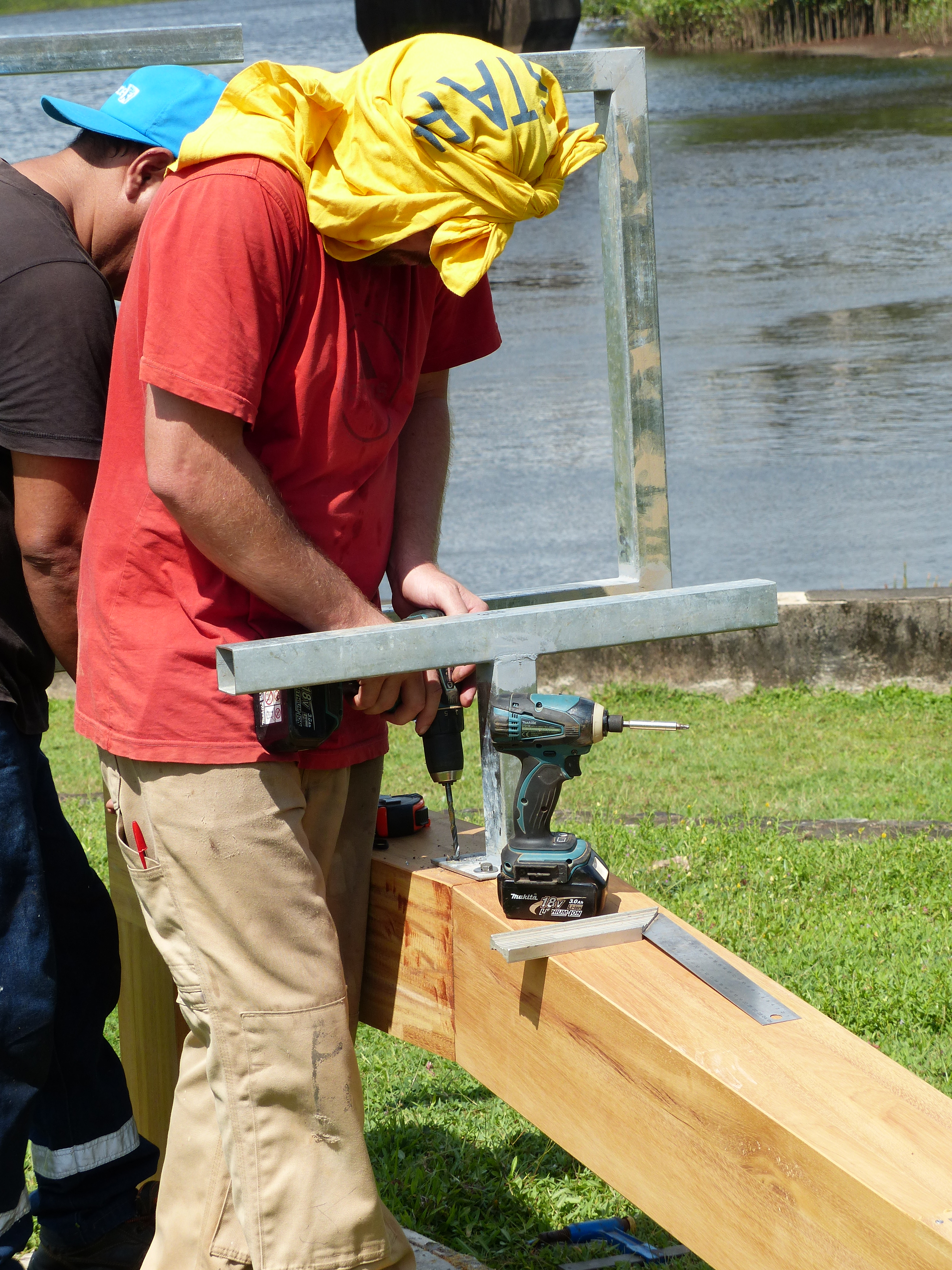 Deux jours de travail ont été nécessaires pour monter et poser les mobiliers du Chemin des savanes sur leurs différents sites à Sinnamary.